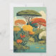 Eine üppige, stilisierte afrikanische Safari-Landschaft mit blühendem Blattwerk in Rot, Orangen, Gelb und Grüntönen rund um einen ruhigen Teich - perfekt für naturgetreue Dekoration und Geschenke.