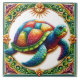 Diese lebendige Kachel zeichnet sich durch eine wunderschön gestaltete Meeresschildkröte aus, die in einem farbenprächtigen Regenbogen verschlungen ist. Die Schildkröte ist von verzierten Blumenmotiven gerahmt, die ein Gefühl für die Schönheit des Ozeans und die Delikatesse der marinen Ökosysteme wecken.