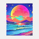 Ein faszinierendes digitales Kunstwerk, das einen lebhaften Sonnenuntergang über einem ruhigen Ozean mit einem großen, farbenfrohen Mond und entfernten Planeten zeigt (Dieses Design wurde mit KI erstellt). Bestellen Sie noch heute und Embrace the Joy of Shopping!