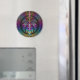 Fraktal Art, modern, abstrakt und bunt. Ein ungewöhnliches filigranes Muster um ein auffallendes Zentrum. Design für Ihren runden Magneten und mehr.