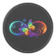 Lebhafte Unendlichkeit mit Regenbogenschmetterling Eishockey Puck