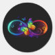 Lebhafte Unendlichkeit mit Regenbogenschmetterling Runder Aufkleber