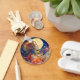 Eine lebendige, runde Schlüsselkette mit einem Aquarellbild eines Mädchens und Mondes.