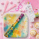 Eine wunderschön bemalte Flöte in lebhaften Aquarelltönen, die warme und coole Farbtöne miteinander verbindet, um eine dynamische und künstlerische Komposition zu schaffen. Die sanfte Splash rund um das Instrument verstärkt seine Eleganz und seinen musikalischen Charme.
