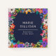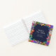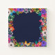 Ein schönes Quadrat-Notebook, das Sie mit Ihrem Namen und dem Zweck des Notebooks in hübschen weißlichen Schriftart in einem Rahmen von Blume personalisieren können. Die von Hand gezeichnet Blume sind rosa, lila, orange, gelb und blau und wachsen unter Beeren und Grünpflanzen auf dunkelblauem Hintergrund.