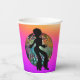 Silhouette des Disco-Tanzers mit farbenfroher Tanzfläche und lebhaften Farben im Hintergrund. Ein Farbverlauf durch lila Rosa und Orange. Design auf beiden Seiten. Dies ist ein perfekter Papierbecher für die Geburtstagskollektion mit dem lustigen und liebevollen Disco-Thema aus dem 70er. Ein lustiges, fröhliches und lebendiges Design. Auch in Weiß erhältlich.