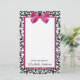 Trendy Schwarz-Weiß-Leopardendruck 5,5" x 8,5" Schreibpapier mit einem vivösen dunkelrosa Band, das in einen niedlichen gurt gebunden ist. Personalisieren Sie dieses elegante und stilvolle Tiermuster-Design, indem Sie den Namen Ihrer Teenager-Mädchen. Flachdruckbild, nicht echtes Band.