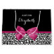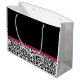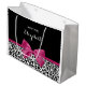 Ein trendiger schwarz-weißer Leopardendruck in großer Größe Geschenktasche mit einem lebendigen dunkelrosa Band, das in einen niedlichen gürtelförmigen Bogen gebunden ist. Personalisieren Sie dieses elegante und stilvolle Tiermuster-Design, indem Sie den Namen Ihrer Teenager-Mädchen. Flachdruckbild, nicht echtes Band.