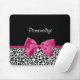 Eine trendige, schwarz-weiße Leopardendruckmousepad mit einem lebendigen dunkelrosa Band, das in einen niedlichen gurt gebunden ist. Personalisieren Sie dieses elegante und stilvolle Tiermuster-Design, indem Sie den Namen Ihrer Teenager-Mädchen. Flachdruckbild, nicht echtes Band.