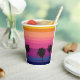 Lebhafter, farbenfroher Sonnenuntergang im Ozean u Pappbecher