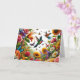 Wünschen Sie sich einen Geburtstag mit dieser atemberaubenden Geburtstagskarte mit einer lebendigen Gartenszene. Mit einem anmutigen Kolibris, bunten Schmetterlingen und eleganten Libellen inmitten eines Strauß blühender Blume verziert, erfasst diese Karte das Wesen der Naturschönheiten.