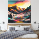 Schöne Kunst zeigen uns, wenn der Horizont ein orangefarbenes Glühen über den Himmel wirft, ein majestätischer schneebedeckter Berg hoch in der Ferne steht.