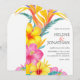 Fügen Sie Ihrem großen Tag einen farbenfrohen Schimmer hinzu, mit diesem lebendigen Hibiskus, der in einem eleganten tropischen Hochzeitsempfang lebt. Mit einem atemberaubenden Blumendesign im Hibiskus präsentiert diese Einladung eine farbenfrohe Farbpalette, die perfekt für eine tropische oder Hochzeit in Urlaubsort geeignet ist. Die üppigen tropischen Blume, gepaart mit einer eleganten Kalligraphie-Schrift, Set den Ton für eine schicke und unvergessliche Feier. Ob Sie in einem sonnigen Strandparadies den Knoten knüpfen oder eine Touch der Tropen in einen Gartenort bringen, diese Einladung ergänzt mühelos sowohl die Hochzeiten im Sommer als auch im Frühjahr. Fühlen Sie sich Ihrer Wahl sicher - passen Sie die Details einfach an Ihren Anzug an, von der Formulierung bis hin zu den Farben. Und mit der Möglichkeit, es digital zu versenden, können Sie Ihre Einladung zeitnah und ohne Aufwand teilen. Klicken Sie, um Ihre Trauung mit dieser lebendigen, eleganten Einladung zum Leben zu erwecken!