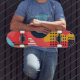 Lebhafter Hintergrund mit Kreisen Skateboard