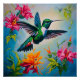 Lebhafter Hummingvogel mit Blume Poster