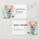 Diese Visitenkarte ist ein fröhlicher Welpe mit farbenfrohen pastellfarbenen Aquarellfarben, die ein freundliches und ansprechbares Design schafft. Ideal für die Förderung Ihrer Pflegedienste, kombiniert es Charme und Professionalität, um einen bleibenden Eindruck auf den Kunden verlassen. Eine schöne Art, Ihre Hingabe zur Pflege von Haustieren zu zeigen!
