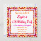 Lebhafte Orangenblüte, muffige Rosa Glückwunsch zum Geburtstag Einladungen. Eine helle, farbenfrohe quadratische Einladungskarte für Ihre Tochter, die ihren Freunden und ihrer Familie die Möglichkeit gibt, sie zu ihrer Geburtstagsparty einzuladen. Ändern Sie den Text mithilfe der Schaltfläche Anpassen in Ihren eigenen Text. Oder bearbeiten Sie die Farben und das Layout im Designwerkzeug. Die Textfarben werden aus den Farben des lebendigen Randes gezeichnet. Die Farben der Grenze arbeiten zum Geburtstag im Frühling, Sommer, Herbst und Winter. Der Text enthält alle wichtigen Details, wie den Namen, das Alter, die Uhrzeit und das Datum des Geburtstags und den Ort des Party. Eine fröhliche, mutige, juwelenfarbene Einladung für ein wichtiges Fest. Die Rückseite der Einladungen zeigen ein hübsches Sternmuster, das vom Empfänger als hübsche Wanddekoration oder dekorative Sake behalten werden kann.