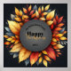 Dieses elegante Erntedank-Poster zeichnet sich durch ein zentrales kreisförmiges Design mit einem Farbverlauf von dunkelgrau bis hellgrau aus, umgeben von einer lebhaften Herbstblätter in warmen Farbtönen Gelb, Orange, Rot und lila Farbtupfern. Die Blätter sind symmetrisch angeordnet und bilden eine festliche und einladende Grenze. Im Mittelpunkt des Kreises steht "The Richardson Family" in einem eleganten Schriftzeichen oben, "Happy Thanksgiving" in einem kühnen Serif-Schriftart unten und das Jahr "20XX" unten. Der Text auf diesem Poster ist vollständig anpassbar, sodass Sie ihn mit Ihrem Familiennamen, einer speziellen Nachricht und dem aktuellen Jahr personalisieren können. Dieses einzigartige und farbenfrohe Design macht es zu einer perfekten Ergänzung Ihrer Erntedank-Dekoration, die Ihren Feierlichkeiten eine persönliche Touch verleiht.