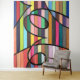 Eine lebendige Mischung aus horizontalen Streifen in Rot, aquamarin, Orange, Rosa und Gelb wird durch schwarze Wirbel angeregt, die das Design durchziehen und Drehung verleihen. Die starken Kurven verleihen ein Gefühl der Bewegung, fast wie Kalligraphie, die über einen farbigen Regenbogen tanzt. Mit seinen auffallenden Kontrasten und dem spielerischen Rhythmus fühlt sich dieses moderne abstrakte sowohl kühl als auch aufregend an und ist ideal für das Auge.