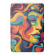 Lebhafte Wirbel und Gänge in einem farbenprächtigen Regenbogen schaffen das abstrakte Profil eines Mannes oder einer Frau mit einem friedlichen Ausdruck. Blau-, Orange-, Gelb- und Rottönen harmonieren harmonisch mit den Gesichtszügen der Konturen und den fließenden Haaren.