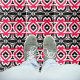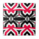 Moderne abstrakte Keramik Fliesen mit einem Muster aus geometrischen Formen in Rosa, Schwarz, Grau und Weiß.