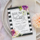Chic und feminin in violett lila, rot-rot gebürsteten und schwarz gebürsteten Farbtönen, unsere stilvolle Braudusche lädt mit rosa und lila Aquarellfarben-Rose und peony-Blume auf einem gewagten gestreiften Hintergrund mit "Brunch and Bubbly" und Ihren Brautparty-Details in der Mitte ein.