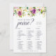 Die schicke Brautparty-Spielkarte passt zu unserer Vibrant Bloom Brautparty Kollektion und bietet Aquarellblumen in üppigen Schmucktönen. Eine doppelseitige Karte lasse Ihnen zwei Spiele in einem! An der Vorderseite finden Sie Bridal Bingo, mit Was in Ihrer Geldbörse ist. Personalisieren Sie mit der Braut zu sein Name und Datum der Dusche.