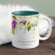 Elegantes Design in der Tasse bietet eine Kaskade von Aquarellfloralen in reichen, schmuckfarbenen violett lila und jaspergrün. Personalisieren Sie Ihre Daten mit Ihrem Namen, Ihrem Firmennamen oder Ihrer Wortwahl mithilfe der beiden benutzerdefinierten Textfelder. Wir Liebe diesen Stil mit dem Jäger grün Interieur für einen koordinierenden Pop der Farbe!