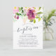 Elegante und moderne Blumentaufe oder Taufeinladung mit einem Blumenstrauß von lebhaften und farbenfrohen Aquarellfarben in den Farbtönen Rosa und Violett lila, mit üppig grünen botanischen Akzenten. Personalisieren Sie mit Ihren Taufdetails in eleganter Mitternachtsblauer Schrift mit handgeschriebener Kalligraphie. Umfasst Platz für die religiöse Zeremonie und ein Party oder Empfang, dem man folgen kann. Die Karten werden auf solides Jasper grün umgeschaltet.