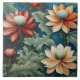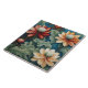 Eine lebendige Anordnung von Blume und Chrysanthemen in Weiß-, Rot- und Orangetönen, Set gegen üppig grüne Blätter.