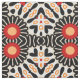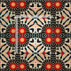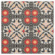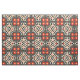 Modernes, einzigartiges Stoffdesign mit einem nahtlosen Mosaikmuster aus geometrischen Formen in Schwarz, Rot, Orange und Beige.