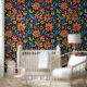 Lebhaftes farbenfrohes, blumengeschmücktes Muster Tapete
