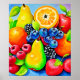 Genießen Sie die lebendige Frische dieses Gemäldes, das noch lebendig ist und eine bunte Fülle von saftigen Äpfeln, Birnen, Beeren und Orangen zeigt (dieses Design aus KI). Bestellen Sie noch heute und Embrace the Joy of Shopping!