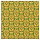 Lebhaftes afrikanisches Druckgewebe gemustert mit goldgelben, grünen und roten Kreise und Blätter