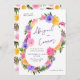 Elemente: tropische Blumenkränze, die Ihren Namen und Tetail umgeben. Namen befinden sich in einem skurrilen Skript, während Details in einem modernen serifenlosen serifenlosen Schriftart liegen. Farben: lila, rosa, gelb, grün, orchid, plum, magenta, fuschia, Zitrone, Themes: hell, tropisch, Strand, Ziel, romantisch, bohemisch, fröhlich, modern, lässig. Sammlung: Vibrierende Lässige Magenta Violet Yellow Wedding Collection Art: Einladungen zum Hochzeitsfeiern