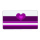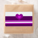 Ein edles Label mit lila gestreiftem Design auf weißem Hintergrund. Ein schattiges lila Herz in der Mitte.