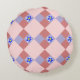 Die Bettdecken und Kissen aus gepflastertem Fliesenboden sorgen für eine gelungene Mischung aus roten und blauen Quadraten, die durch ein hübsches Motiv aus blauer Blume unterstrichen wird. Ideal, um dem Raum eine Touch moderner Eleganz und Farbenpracht hinzuzufügen.