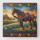Lebhaftes Pferd in farbenfroher Landschaft Quadratische Wanduhr