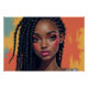 Auffallende und farbenfrohe Illustration einer Person mit geflochtenen Haaren, Set vor einem lebendigen Hintergrund.