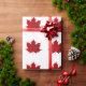 Dieses lebendige rote Ahornleaf wird großartig um Ihre Geschenke verpackt aussehen, das perfekte Geschenk für Kanadier, das rote Blatt wiederholt sich über das Packpapier, der Hintergrund ist weiß.