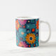 Lebhaftes Retro-Blumenmuster mit Aquamarinen Quadr Kaffeetasse