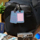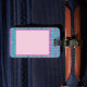 Lebhaftes rosa rechteckiges Design auf blauem Hint Gepäckanhänger