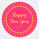 Lebhaftes Rosa-Sternexplosion-Script-Happy New Yea Runder Aufkleber