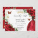 Personalisieren Sie diesen hübschen roten Blumenstrauß Quinceañera / Sweet 16 Geburtstag Save the Date einfach und schnell. Klicken Sie einfach auf die Schaltfläche "Weitere Einstellungen", um die Texte zu bearbeiten, Schriftart und Schriftart zu ändern. Mit einem Mädchen gekleidet in einem schönen glitzernden roten Ball, lebendigen rote Rosen, Schmetterlinge und Goldelemente. Matching-Elemente im Speicher verfügbar. c) Somerset Fine Paperie