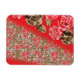 Lebhaftes rotes Gewebe, mit viel Blumen und Magnet