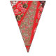 Lebhaftes rotes Gewebe, mit viel Blumen und Wimpelkette