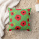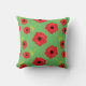 Ein wunderschönes Design mit fett roten Pappeln mit schwarzem Set vor einem frischen grünen Polka Dot Hintergrund. Der lebhafte Kontrast und die spielerische Anordnung schaffen eine fröhliche und auffällige Ästhetik.