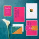 Lebhafte, farbenfrohe, minimalistische Hochzeitskollektion mit hellen Rosa- und Orangenfarben. Mischen und passen Sie die Farben an. Bildvorlage über Pixabay, lizenziert unter CC0 und muss durch Ihr eigenes Foto ersetzt werden