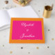 Lebhafte, farbenfrohe, minimalistische Hochzeitskollektion mit hellen Rosa- und Orangenfarben. Farben mischen und passen