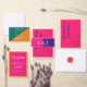 Lebhafte, farbenfrohe, minimalistische Hochzeitskollektion mit hellen Rosa- und Orangenfarben. Farben mischen und passen